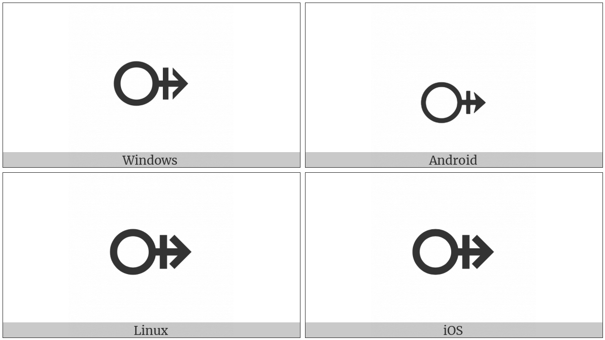 The image below shows how the “Horizontal Male With Stroke Sign” symbol might look like on different operating systems. If the font in which this web site is displayed does not contain the symbol and there is no fallback font able to render it, you can use the image below to get an idea of what it should look like.