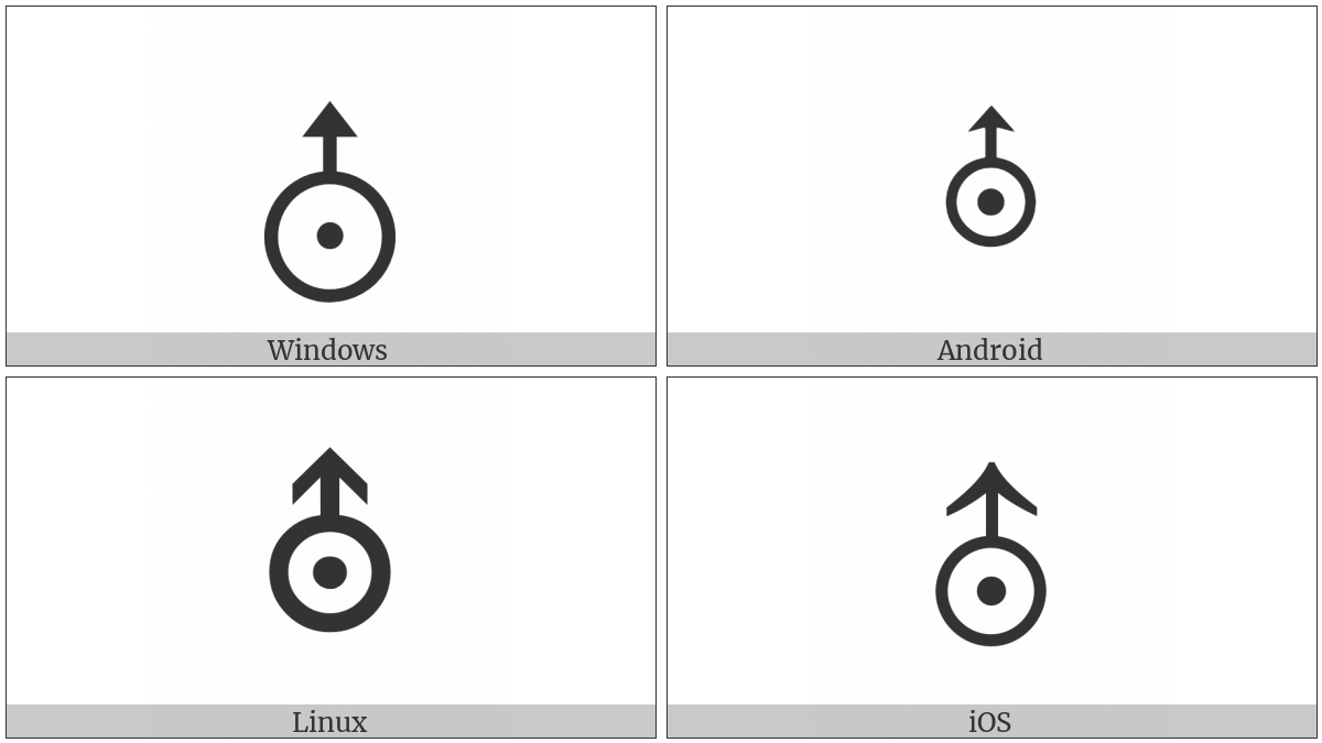 The image below shows how the “Astronomical Symbol For Uranus” symbol might look like on different operating systems. If the font in which this web site is displayed does not contain the symbol and there is no fallback font able to render it, you can use the image below to get an idea of what it should look like.