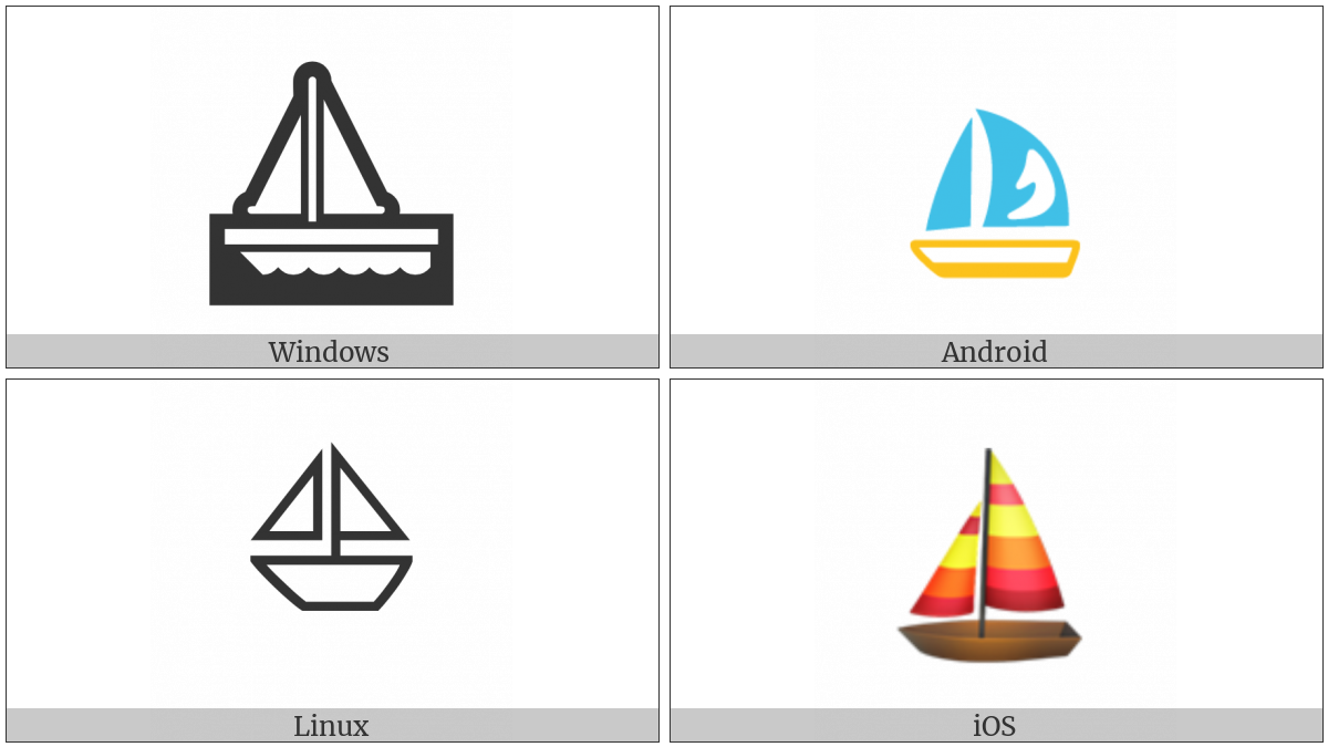 The image below shows how the “Sailboat” symbol might look like on different operating systems. If the font in which this web site is displayed does not contain the symbol and there is no fallback font able to render it, you can use the image below to get an idea of what it should look like.